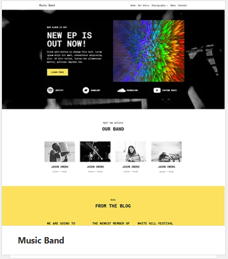 Awal-awal ketika sudah mulai membuat, saya mengusulkan theme Neve, karena saya mendengar banyak hal baik tentang nya. Setelah install, tampaknya Neve sangatlah mendukung. Banyak template yang menarik, dan pada akhirnya kita setuju untuk memilih salah satu starter site bernama “Music Band”.