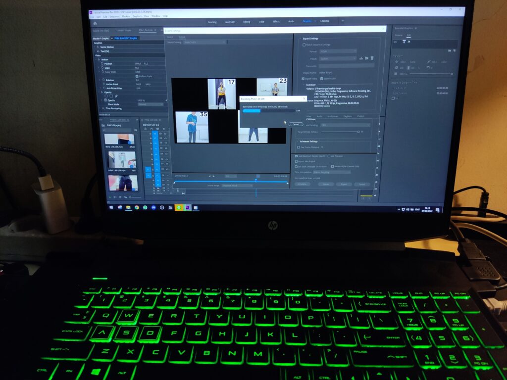 Editing this exercise video does not require effects but fitting the tempo and movement of each video is the toughest challenge. The slightest imperfection or inaccuracy can result in one or more videos that don’t match the beats they should. I’ve done dozens of import, cut, drag, crop, and change the video layout. This process takes a very long time for a 1 minute video because my laptop is slow. The timeline preview can’t be watched smoothly which makes it even more difficult for me. Even though you already have 16GB of RAM, it’s still slow.